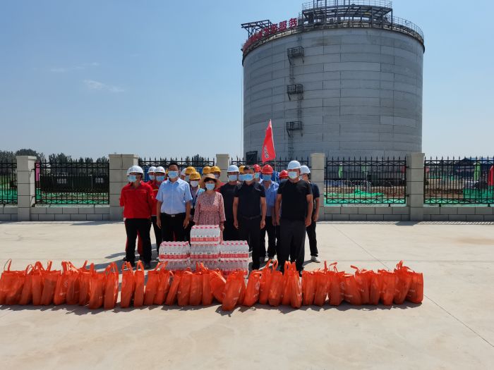 活動(dòng)由工會(huì)主席路敏帶隊(duì),相繼深入自來(lái)水公司管網(wǎng)平差項(xiàng)目、能源公司天然氣儲(chǔ)氣庫(kù)項(xiàng)目、房地產(chǎn)公司民兵訓(xùn)練基地項(xiàng)目、黃河水務(wù)公司北灣調(diào)蓄池項(xiàng)目、華州區(qū)自來(lái)水公司,路敏代表集團(tuán)黨委對(duì)在炎熱的夏日中仍舊不辭辛苦的奮戰(zhàn)在施工一線的建筑工人表示高度的贊揚(yáng)及肯定,并為一線職工、農(nóng)民工送上茶葉、風(fēng)油精、藿香正氣水、口罩等防暑降溫用品共250余份。每到一處,路敏都與一線員工詳細(xì)交流,了解工作生活情況,感謝他們?yōu)榧瘓F(tuán)發(fā)展做出的貢獻(xiàn),并叮囑他們一定要注意防暑降溫與疫情防控,保障自身和家人身體健康。