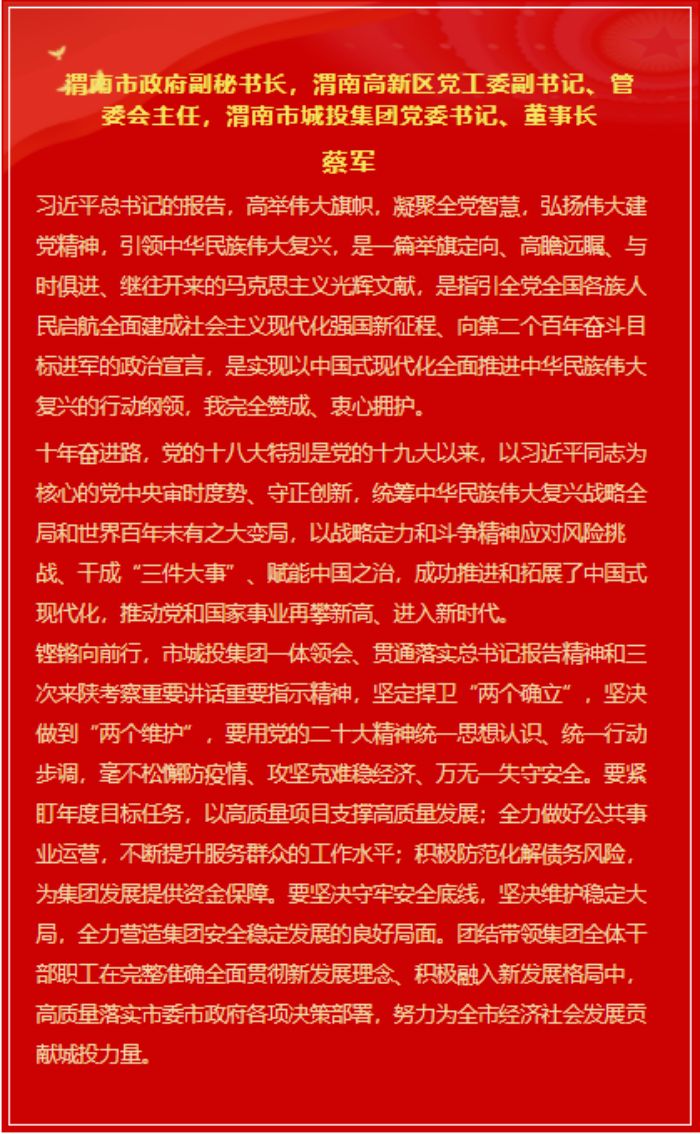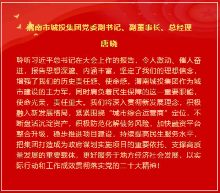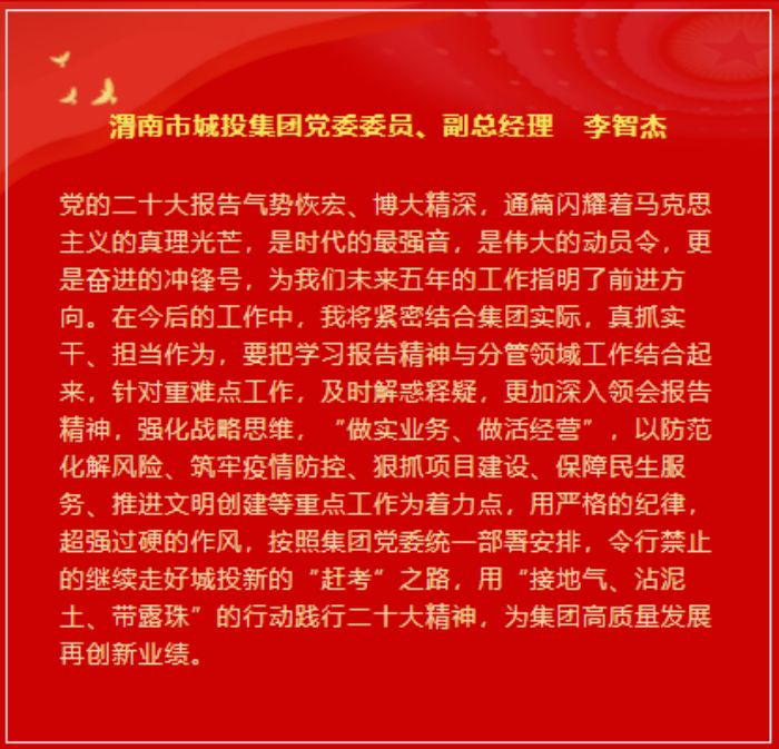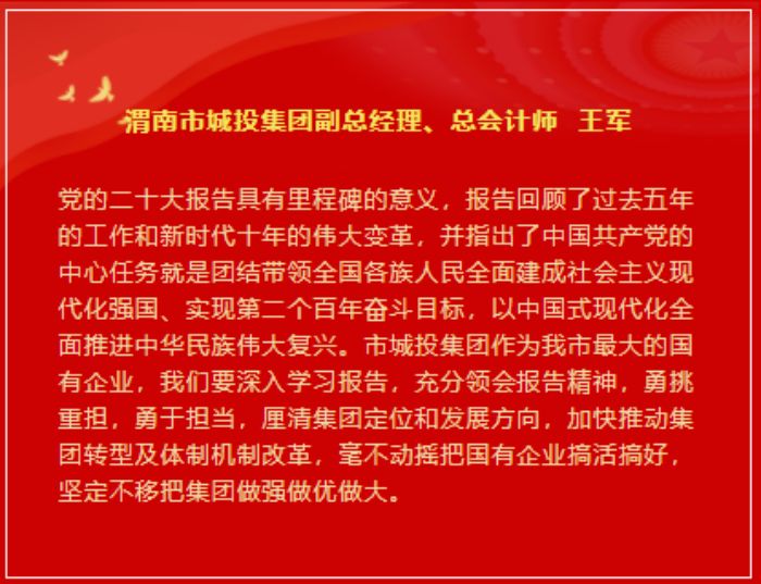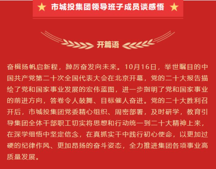 市城投集團(tuán)領(lǐng)導(dǎo)班子成員談感悟
