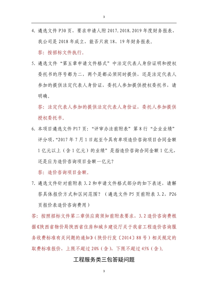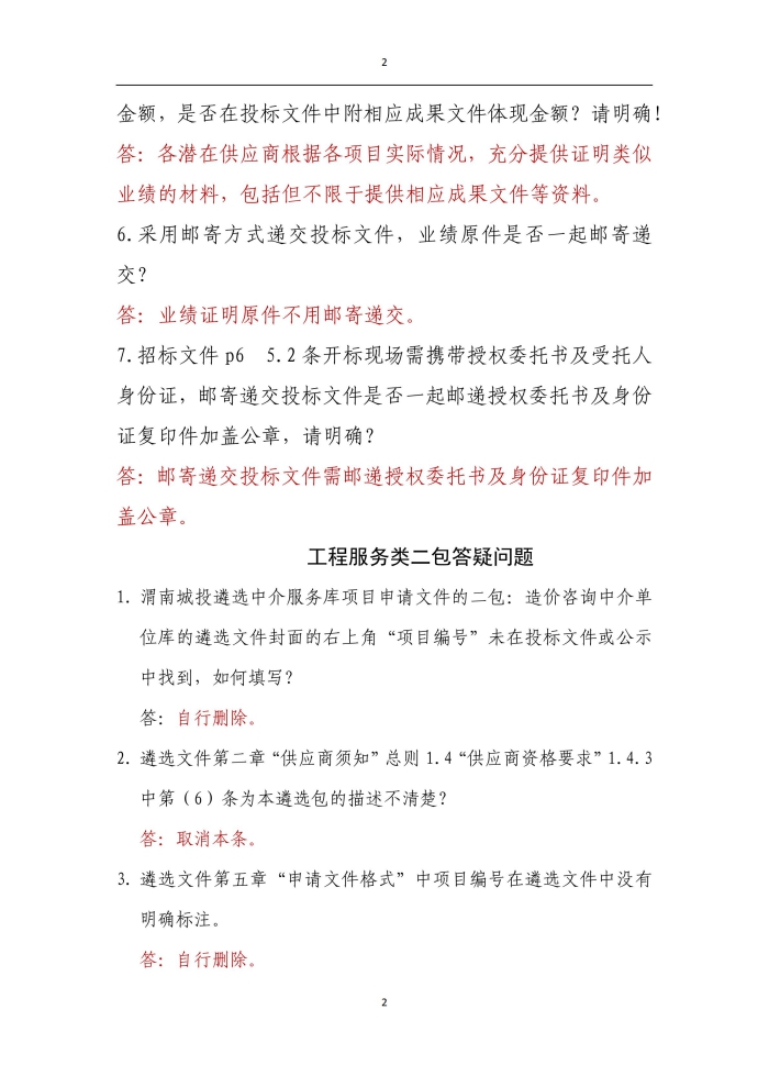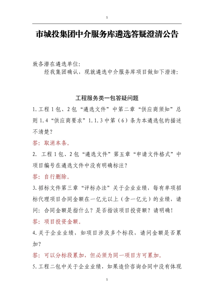 市城投集團中介服務庫遴選答疑澄清公告