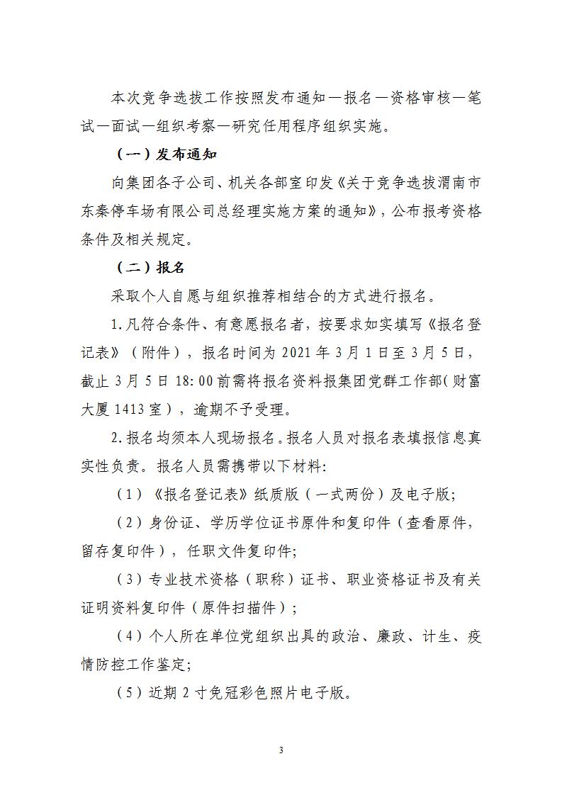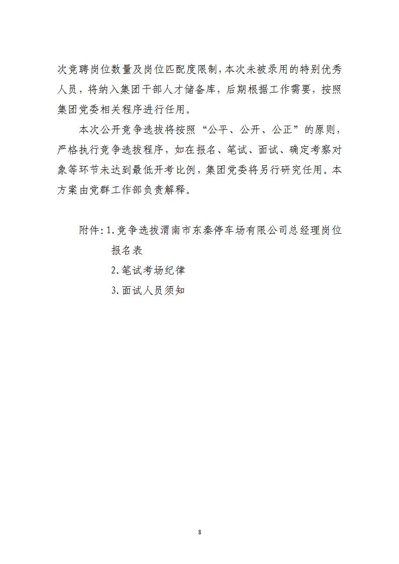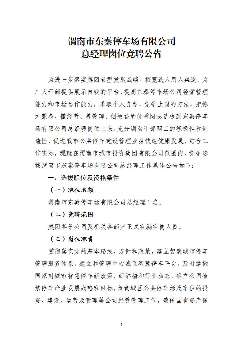 渭南市東秦停車場有限公司總經(jīng)理崗位競聘公告